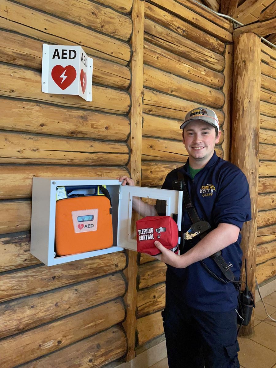 Camp Berry previously had an AED at the building known as the health lodge. However, it was older technology that needed to be replaced.