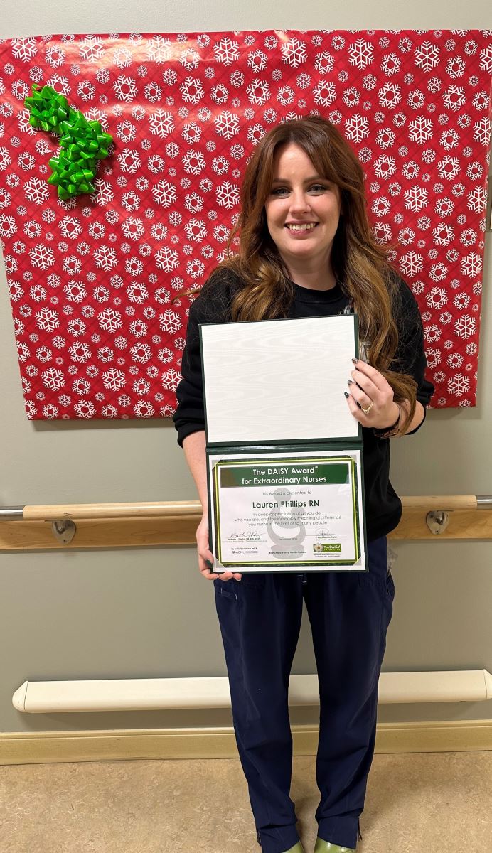 Lauren Phillips, RN, has received the first DAISY Award at Blanchard Valley Health System.