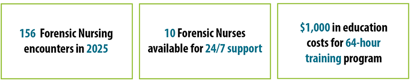 By supporting the forensic nursing program, you will care for these patients and help provide for our caregivers. From new equipment to education costs, your support will allow the forensic nursing program to recruit more qualified nurses and continue providing exceptional care for those at their lowest. Their service is the point where healing can begin for our patients who need it most.